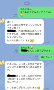 私、インフルエンザになり、2週お休みをさせていただいた時のラインのやり取りです。